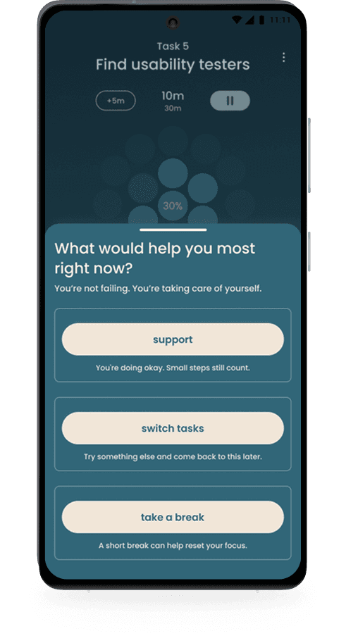 Task switching felt non-punitive and hopeful, reducing tool abandonment risk
