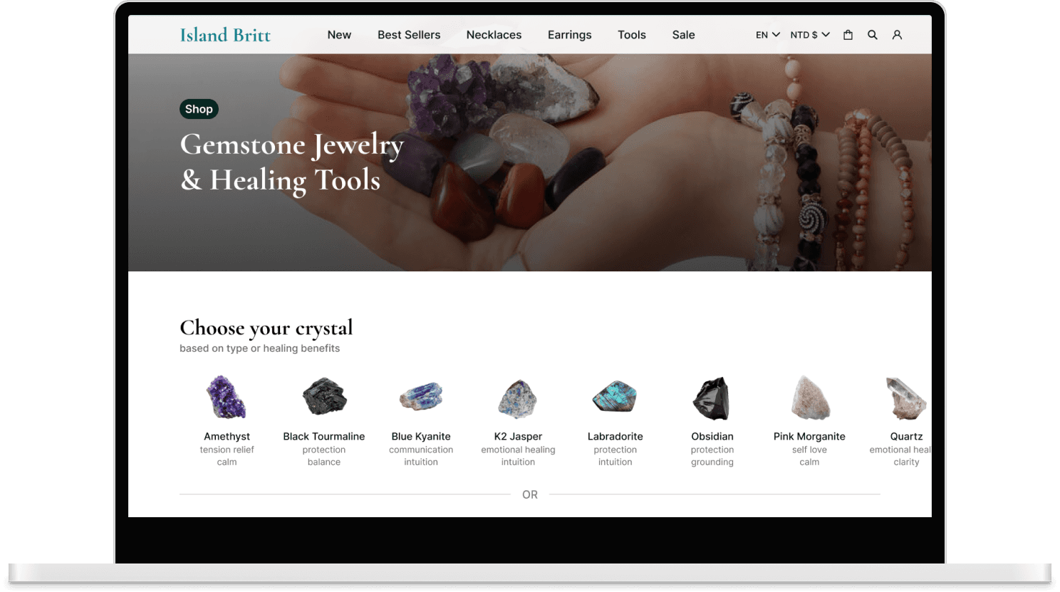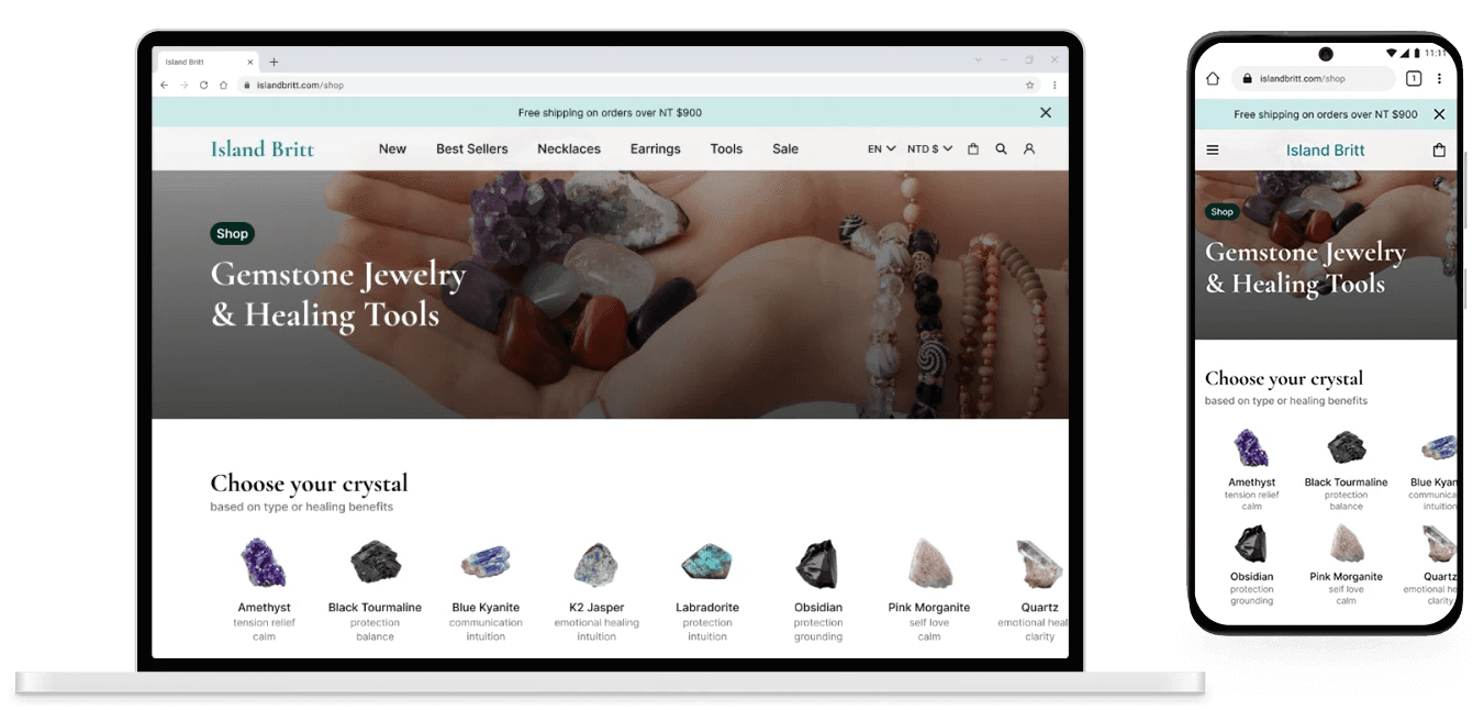 A warm, story-led e-commerce redesign that connects users with the meaning behind crystal jewelry